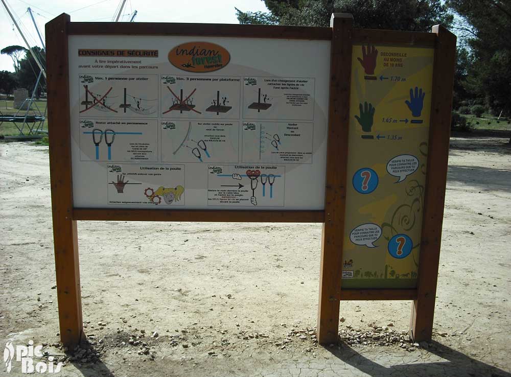 Panneau d'information - Consignes parc Les panneaux d'information - Structure en bois Les panneaux d'accueil et d'information