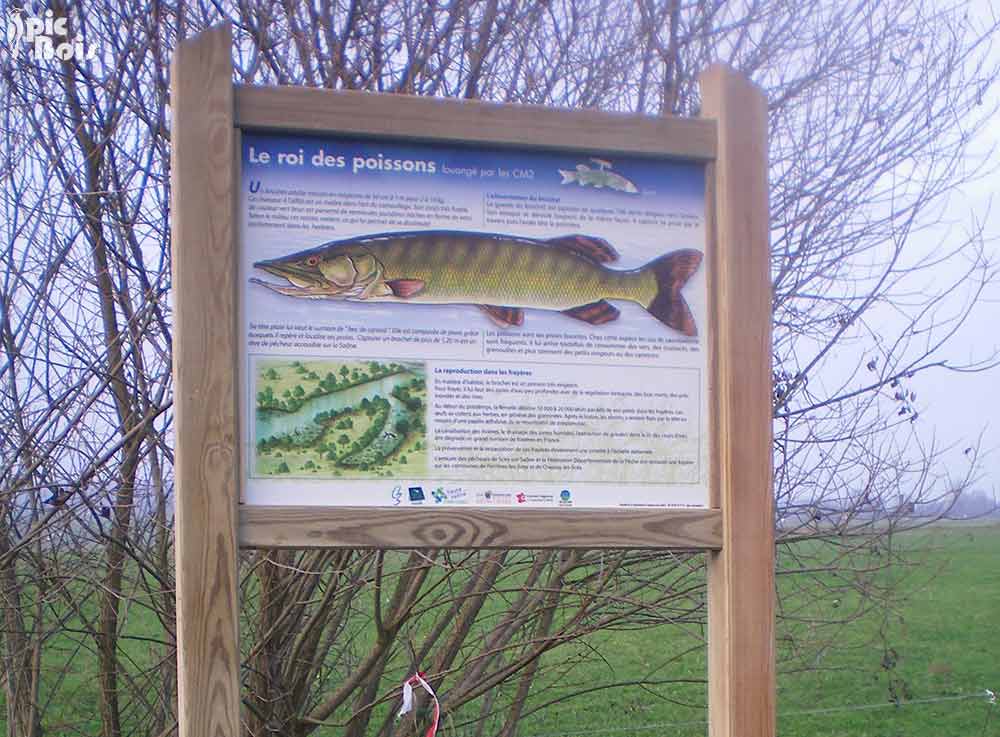 Panneau d'information - Les poissons Les panneaux d'information - Structure en bois Les panneaux d'accueil et d'information