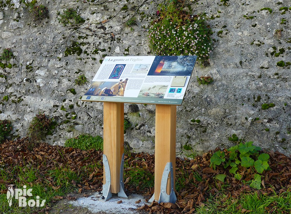 Une table interactive qui invite à la découverte du patrimoine local à travers l’église et sa grotte attenante. Les visiteurs peuvent explorer des illustrations et textes explicatifs tout en manipulant des éléments ludiques pour un apprentissage actif.