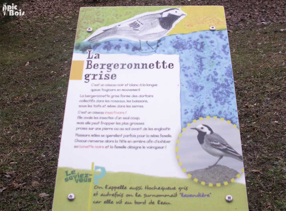 L’idée maîtresse est de solliciter les enfants pour élaborer le contenu des bornes thématiques, orientées sur le thème des oiseaux. Armée d’une volonté de fer, Annayk obtient d’une part, l’adhésion des classes, et d’autre part les spécificités techniques PIC BOIS qui vont permettre de cadrer les créations. Au programme du dernier trimestre de l’école primaire : des groupes d’écritures et des groupes de dessins, des recherches sur les oiseaux, des cours de dessins, la fabrication de corridors biologiques, de nichoirs et de refuges à insectes pour les plus grands. 3 mois ont suffit pour que le projet aboutisse. Et ça marche !