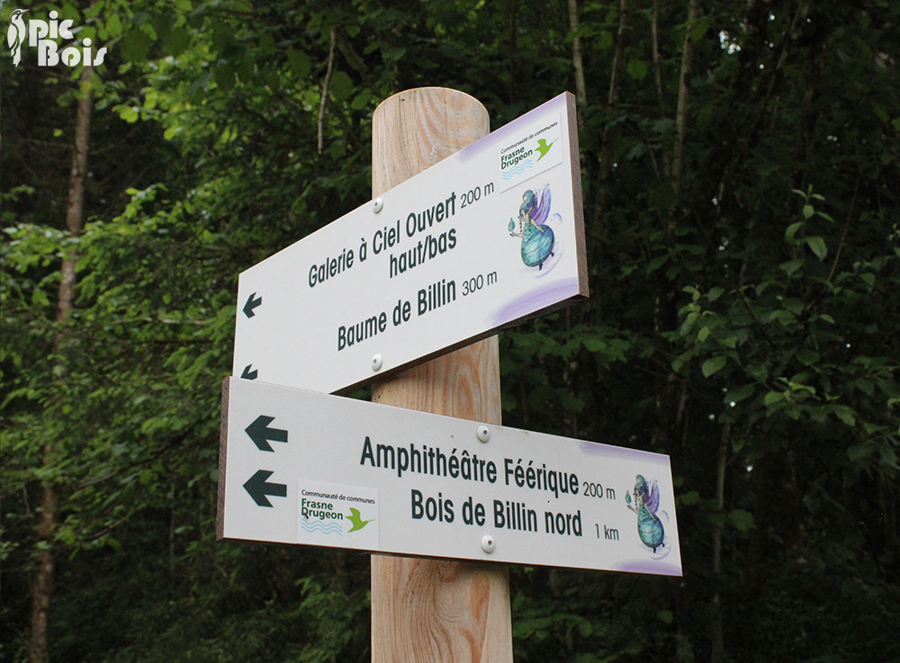Des balisages et flèches directionnelles offrent une signalétique complète afin de guider les usagers. Des panneaux d’informations et tables de lecture vulgarisent de façon ludique les phénomènes karstiques et les paysages façonnés par l’eau, l’Homme et le temps.