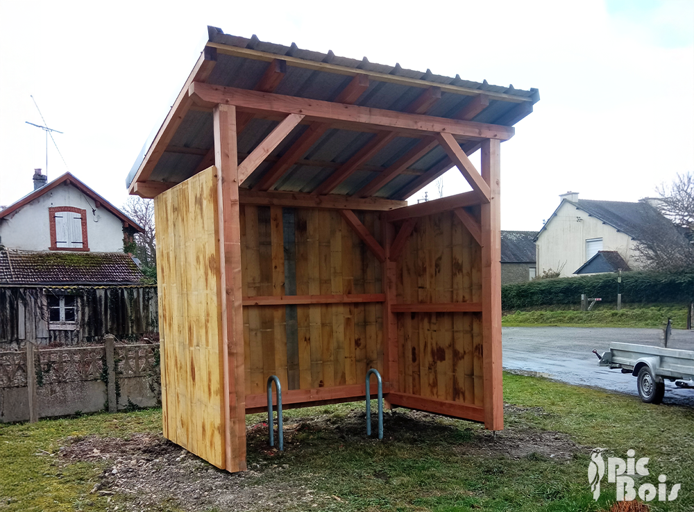 - Abri vélo en bois : un abri élégant et naturel en châtaignier, offrant une solution esthétique et durable pour les cyclistes.