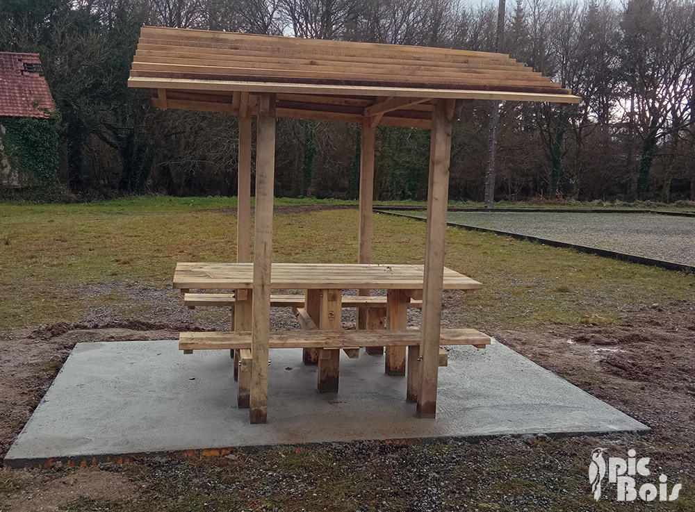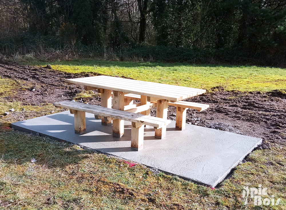 - Tables de pique-nique en châtaignier, dont une version accessible aux personnes à mobilité réduite – PMR, garantissant ainsi l’inclusivité et l’accessibilité des espaces publics.