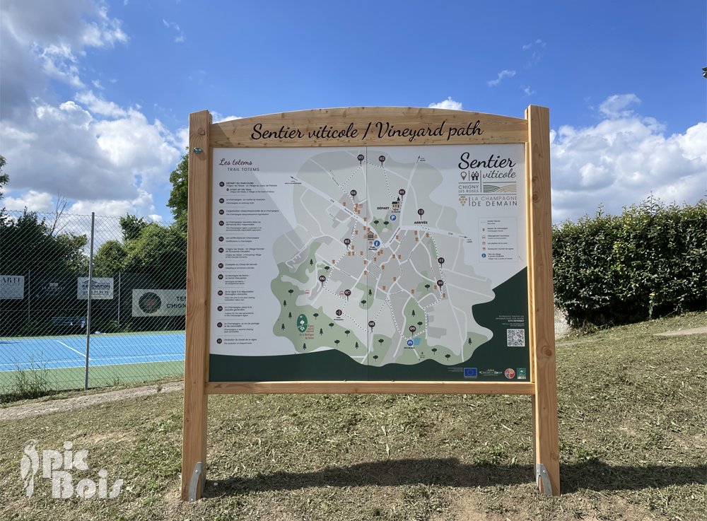 Une signalétique directionnelle spécifique guide également les visiteurs et les habitants vers les différentes caves à champagne du village, facilitant la découverte des producteurs locaux tout en valorisant l’identité viticole de Chigny-les-Roses.